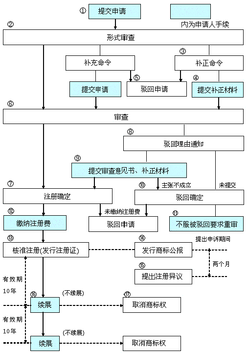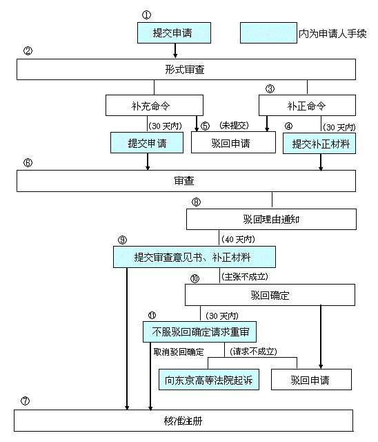 ⑦中負(fù)責(zé)的審查官,確定沒(méi)有駁回注冊(cè)理由時(shí),向申請(qǐng)人發(fā)出核準(zhǔn)確定的通知。